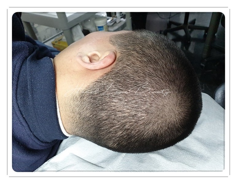 군 복무후 현 취업 준비중으로 외모에 신경을 많이 쓰며 모발이 문제라하시라 하시는데 제가 보기엔 모발이 굵고 튼튼해 보여 안하서도 될듯하지만 본인 만족이라 진행 결정하셨답니다