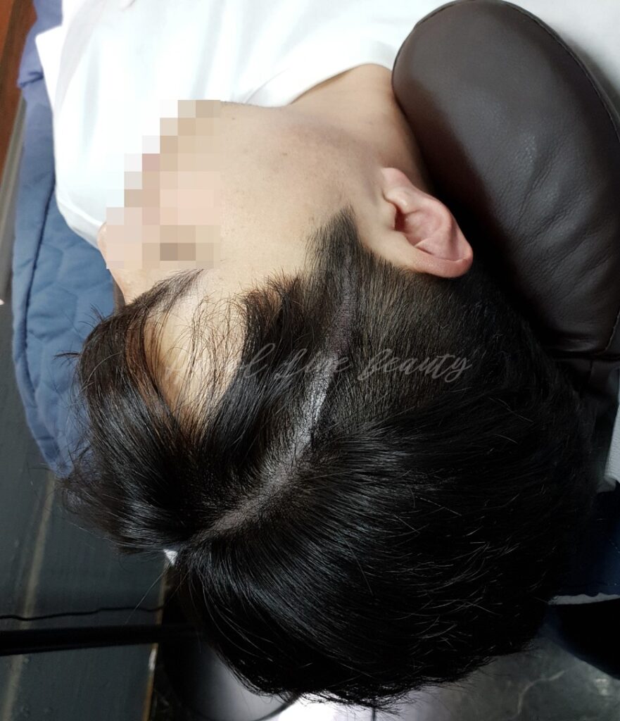 하여 저희 한올에서 다른 부위는 풍성하여 상처 부위만 시술 진행하기로 결정 하셨답니다
